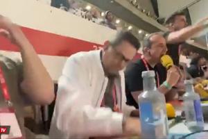 体育资讯04月27日讯 凌晨本赛季国王杯决赛,孔德在补时阶段破门帮助巴萨3-2绝杀皇马,阿斯报主编,著名皇马球迷龙赛罗在看台上的反应也被记录了下来。