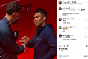 曼联名宿费迪南德赛后采访了卡塞米罗,费迪南德社媒晒出采访的照片,配文:“这是向卡塞米罗致敬的动态,人们说他不行了……”