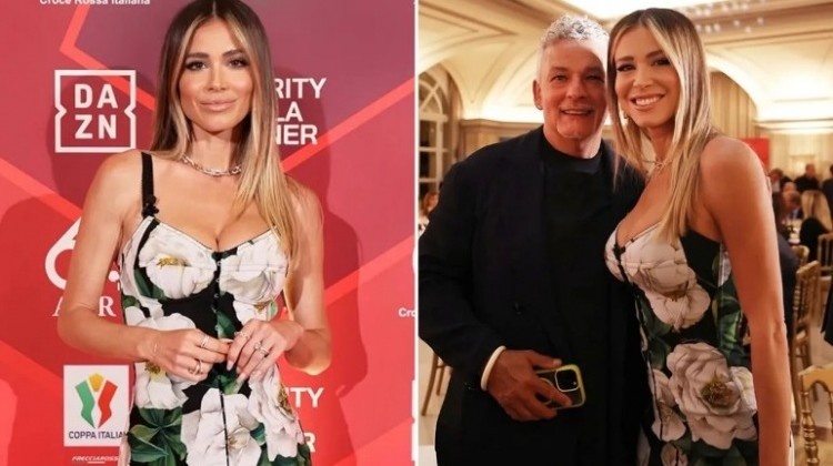 修身剪裁的繁花长裙勾勒出莱奥塔的完美曲线,闪耀银质项链与多枚戒指的点缀更显她傲人的气质。莱奥塔将这套造型分享至拥有930万粉丝的个人ins账号,瞬间引发热议。在晚宴上,莱奥塔还与足坛传奇巴乔友好合影。