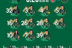 体育资讯05月20日讯 北京时间15:30,足协杯第3轮,中乙球队广州蒲公英主场迎战浙江队,赛前官方公布首发阵容。