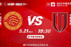 体育资讯05月21日讯 足协杯第3轮,中甲广西平果主场迎战中超成都蓉城。