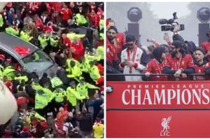 体育资讯05月27日讯 利物浦今天举行夺冠大巴庆祝游行,游行期间发生一起汽车撞人事故。