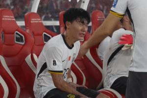 国足微纪录片发布,胡荷韬赛后坐在替补席痛苦不止。