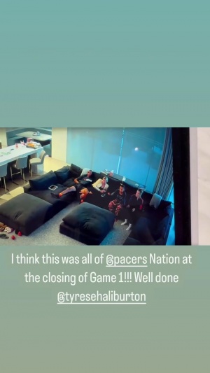 米勒写道:我觉得这就是所有步行者球迷最后时刻的样子,干得漂亮@哈利伯顿!
