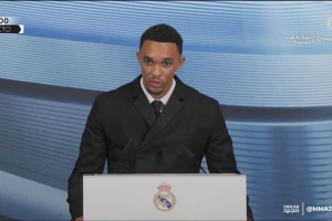 阿诺德在加盟皇马的亮相仪式中发言,Lewis Steele转发阿诺德发言的视频,并写道:“我在多邻国上学习西班牙语大概有一年了,但不得不承认,我绝不可能说得这么流利。”