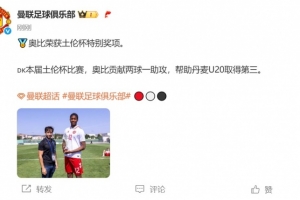 曼联前锋奥比-马丁随丹麦U20队出战土伦杯,他贡献2球1助攻,帮助球队取得第三,并荣获土伦杯特别奖项。