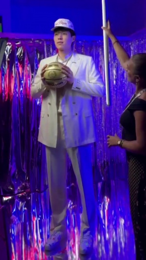 NBA官方和开拓者官方晒出了杨瀚森拍摄定妆照的视频和照片。