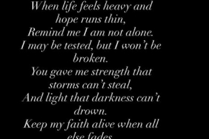 “我也许会被考验,但不会被打倒。你赐予了我风暴无法夺走的力量,和黑暗无法掩盖的光明。”