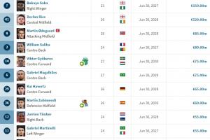 阿森纳正式签下瑞典前锋约克雷斯,队内身价排名方面,27岁的约克雷斯以7500万欧身价空降队内第五名。