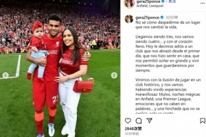 体育资讯7月30日讯 利物浦边锋迪亚斯已经官宣加盟拜仁,他的妻子也通过社媒发文告别: