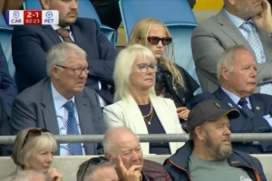 卡迪夫城最终2-1赢得比赛,弗格森是这场比赛的次要看点,他被摄像机捕捉到坐在看台上,身旁是彼得堡联足球总监巴里-弗莱。弗莱曾在老特拉福德青训营受训,但未代表一线队出场过。