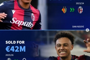 23/24赛季1088万欧买入,今夏3100万欧卖至那不勒斯,净赚2012万欧
