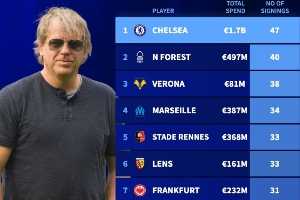 英超big6引援费用及人数:切尔西花费17亿欧签下47名球员,断档领先↓