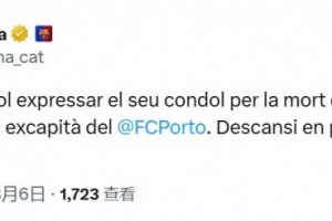 巴萨在其官方社交媒体上写道:“巴塞罗那足球俱乐部对波尔图体育总监、前队长若热-科斯塔的去世表示沉痛哀悼,愿他安息。”