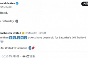 体育资讯8月6日讯 曼联官方发推预热对阵佛罗伦萨的主场热身赛,目前效力于佛罗伦萨的前曼联门将德赫亚进行了转发。