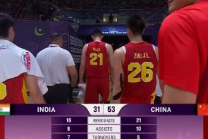 体育资讯08月07日讯 亚洲杯第三日,中国队半场53-31领先印度!