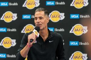 主持人:“我们知道湖人的多数股权已经易主,有了新的所有者。虽然珍妮仍然担任球队总裁,但在很多决策方面,权力已经移交给了新人。再看看那些由珍妮-巴斯及其家族聘用的老臣,比如罗布-佩林卡,他担任这份工作已经有相当长一段时间了。当有了新的管理层和新的掌权者,到了某个节点,会不会有人站出来说‘兄弟,感谢你的付出,但我们想换个新方向’?你觉得他还能在湖人总经理的位置上待多久?”