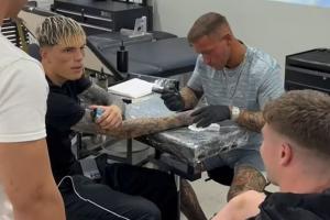 在近期被拍到的一段视频中,加纳乔正在手臂上纹新的纹身,而他的另一只手似乎拿着一支电子烟。
