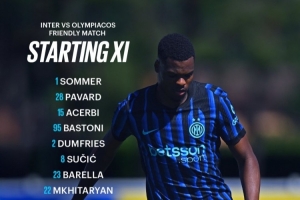 体育资讯8月17日讯 北京时间今天2点半,友谊赛国米对阵奥林匹亚科斯,国米此役首发已经公布。