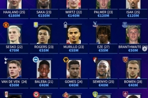 体育资讯8月17日讯 新赛季英超已经开幕,德转也盘点了英超20支球队中身价最高的球员,其中哈兰德1.8亿欧领衔,具体如下: