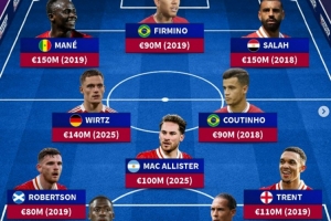 罗伯逊(2019年,8000万欧)、科纳特(2025年,6000万欧)、范迪克(2019年,1亿欧)、阿诺德(2019年,1.1亿欧)