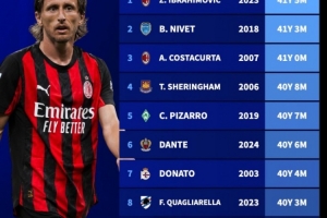 体育资讯9月15日讯 意甲第3轮比赛,米兰以1-0的比分小胜博洛尼亚。本场比赛,40岁老将莫德里奇打进了全场唯一进球,克罗地亚人跻身本世纪五大联赛最年长进球者前10。