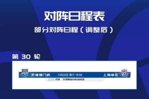 体育资讯9月17日讯 中超官方消息,中超第30轮天津津门虎vs上海申花比赛场地调整为天津奥体中心体育场。