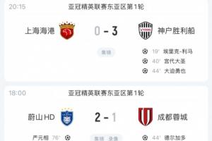 体育资讯09月17日讯 亚冠精英联赛东亚区第1轮全部战罢,中超3队本轮全部以失利告终。