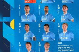 1-梅雷特、22-迪洛伦佐、31-别克马、4-布翁乔尔诺、37-斯皮纳佐拉、6-吉尔莫、21-波利塔诺、20-埃尔马斯、11-德布劳内、8-麦克托米奈、19-霍伊伦
