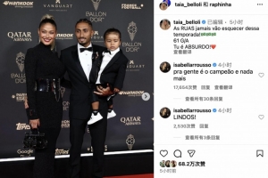 体育资讯9月23日讯 拉菲尼亚妻子更新社交媒体,晒出与丈夫等携手参加金球奖颁奖典礼的相关动态。