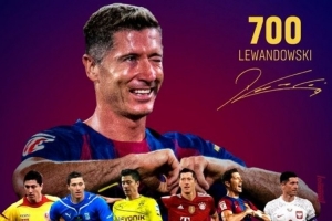 体育资讯9月29日讯 西甲第7轮比赛,巴萨在主场以2-1的比分逆转战胜皇家社会,比赛第58分钟亚马尔传中助攻,莱万头球破门。值得一提的是,这也是莱万在职业生涯的第700球。