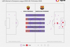 据Opta统计,巴萨女足本赛季开局各赛事9连胜,打进48球,仅丢2球,场均进球超过5粒。