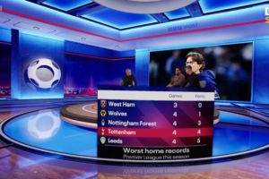 据BBC统计,热刺本赛季英超4场主场比赛拿到4分,主场战绩仅强于垫底的诺丁汉森林、西汉姆和狼队。