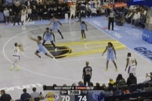 GIF-东契奇三分命中 湖人轰出18-5