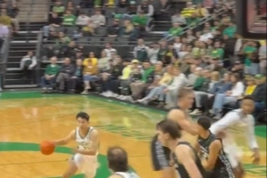 此役,中国球员林葳代表俄勒冈大学首发迎来首秀,比赛当中击地妙传中锋Nate轻松吃饼,林葳得到NCAA生涯首次助攻。