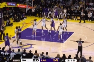 GIF-东契奇单打奥利尼克出手打进,但裁判吹提前犯规,不是2+1,只有两罚