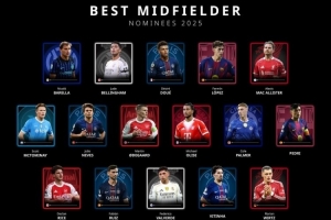 2025年环球足球奖最佳中场球员候选名单: