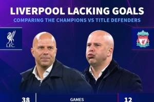 体育资讯11月23日讯 英超第12轮比赛,利物浦主场0-3不敌诺丁汉森林。德国转会市场统计了利物浦上赛季和本赛季的英超数据,并做出对比。