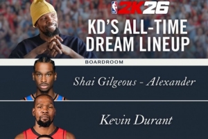 体育资讯11月25日讯 今天,火箭球星凯文·杜兰特在社媒晒出了自己心目中的2K首发五人组。