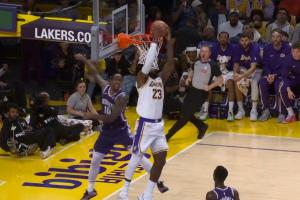 GIF-詹姆斯折叠反扣!湖人主场沸腾!