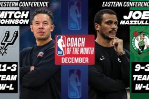 米奇带马刺在12月取得11胜3负的战绩;马祖拉带队战绩则是9胜3负。