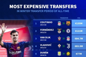 冬窗最贵转会排名: