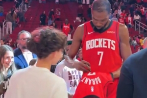 赛后,杜兰特频繁互动,迟迟未离开。