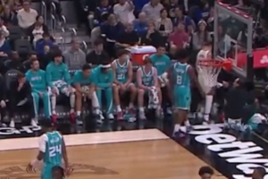 GIF-塞克斯顿防库里 一直防到球员通道了