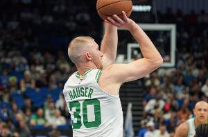 此役,豪泽出战30分钟,21投10中,全部都是三分,也没有罚球,砍下30分6篮板3助攻1抢断1盖帽。
