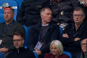 体育资讯02月14日讯 曼城vs索尔福德城第18分钟,镜头给到看台,索尔福德城股东斯科尔斯在现场观战。