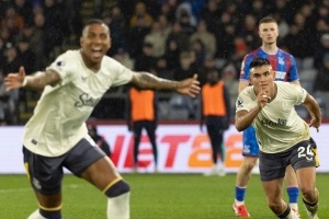 体育资讯2月22日讯 英超第25轮埃弗顿客场2-1击败水晶宫,阿根廷球员卡洛斯-阿尔卡拉斯传射建功,在下半场比赛打入制胜球后,他做出了C罗标志性的“siu!”庆祝动作。