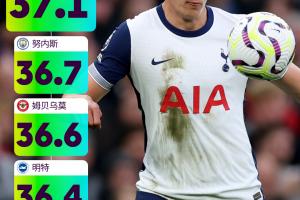 第一:范德文 (热刺)37.1(KM/H)