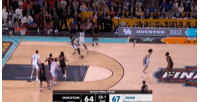 休斯敦大学反抢成功后的补篮、追到1分