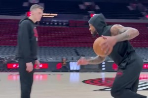 下一篇: 杀手锏🥷莱昂纳德赛前热身练习中距离单打~